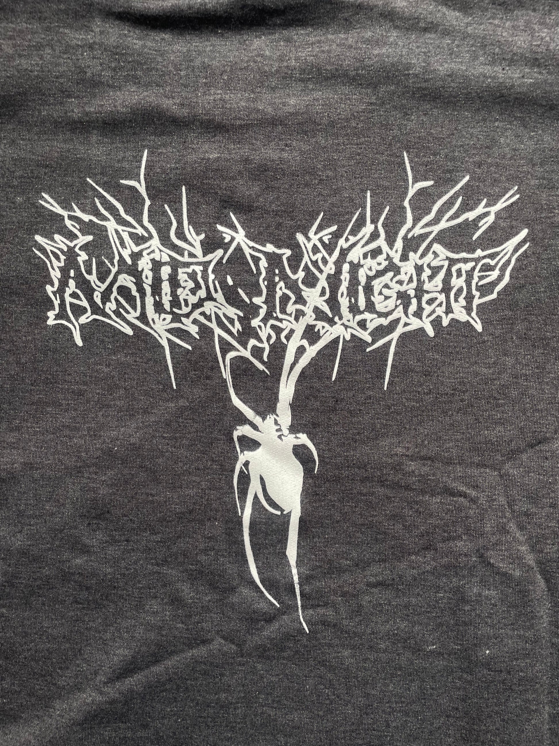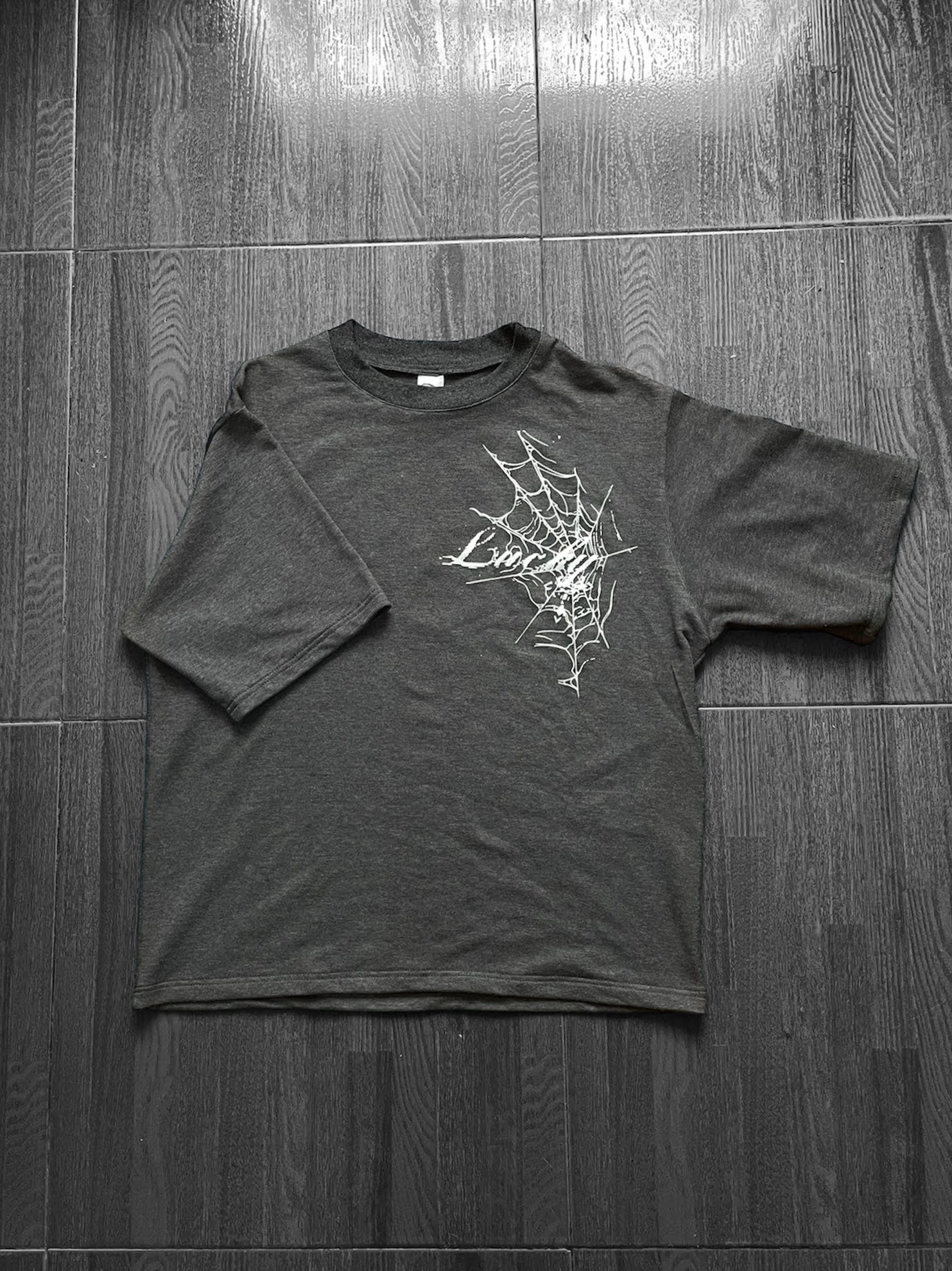 Camiseta gris confeccionada en tela burda, resistente y cómoda para el uso diario. Presenta estampados en la parte frontal y trasera con leve relieve que aportan textura y profundidad al diseño. Horma normal, pensada para un calce equilibrado.